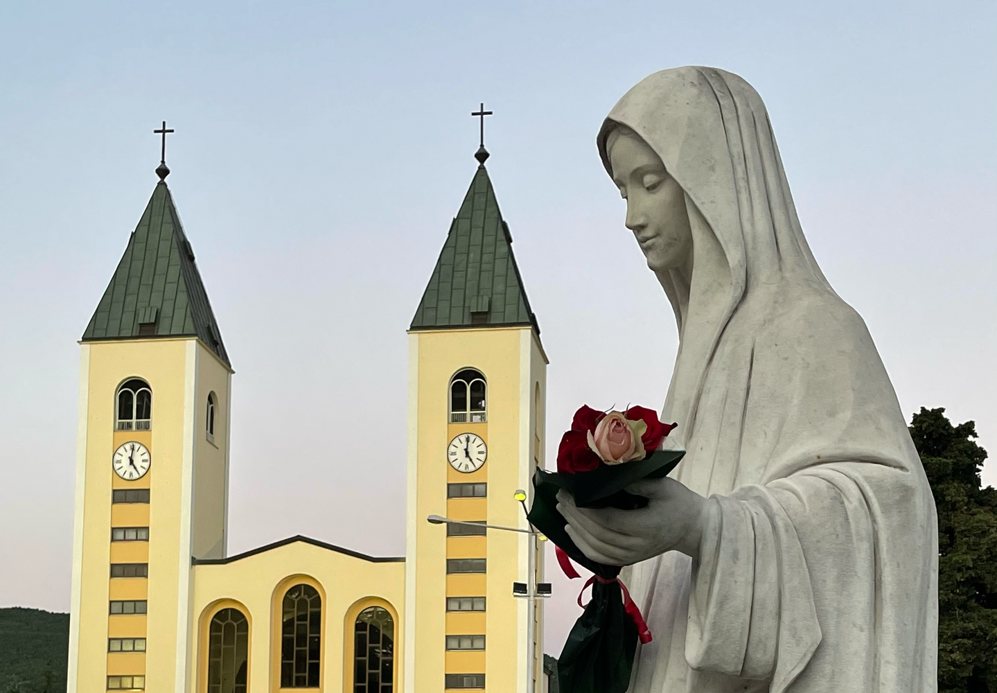 The bronze statue of the Risen Christ (located on the grounds of St. James Church) miraculously seeps droplets of water out of the right knee of Jesus. You will have the opportunity to venerate this statue and pray at this peaceful site. We will also visit other places for prayer such as Vicka's childhood home, the Blue Cross, the statue of Our Lady in front of St. James Church, etc.
